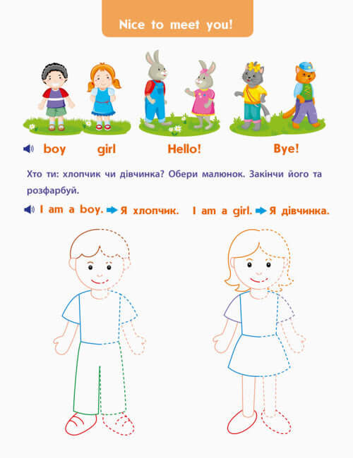 Із цими зошитами вивчати англійську — суцільне задоволення! Дитина дізнаватиметься нові слова, вчитиметься будувати діалоги. І все це через гру! У зошитах можна: