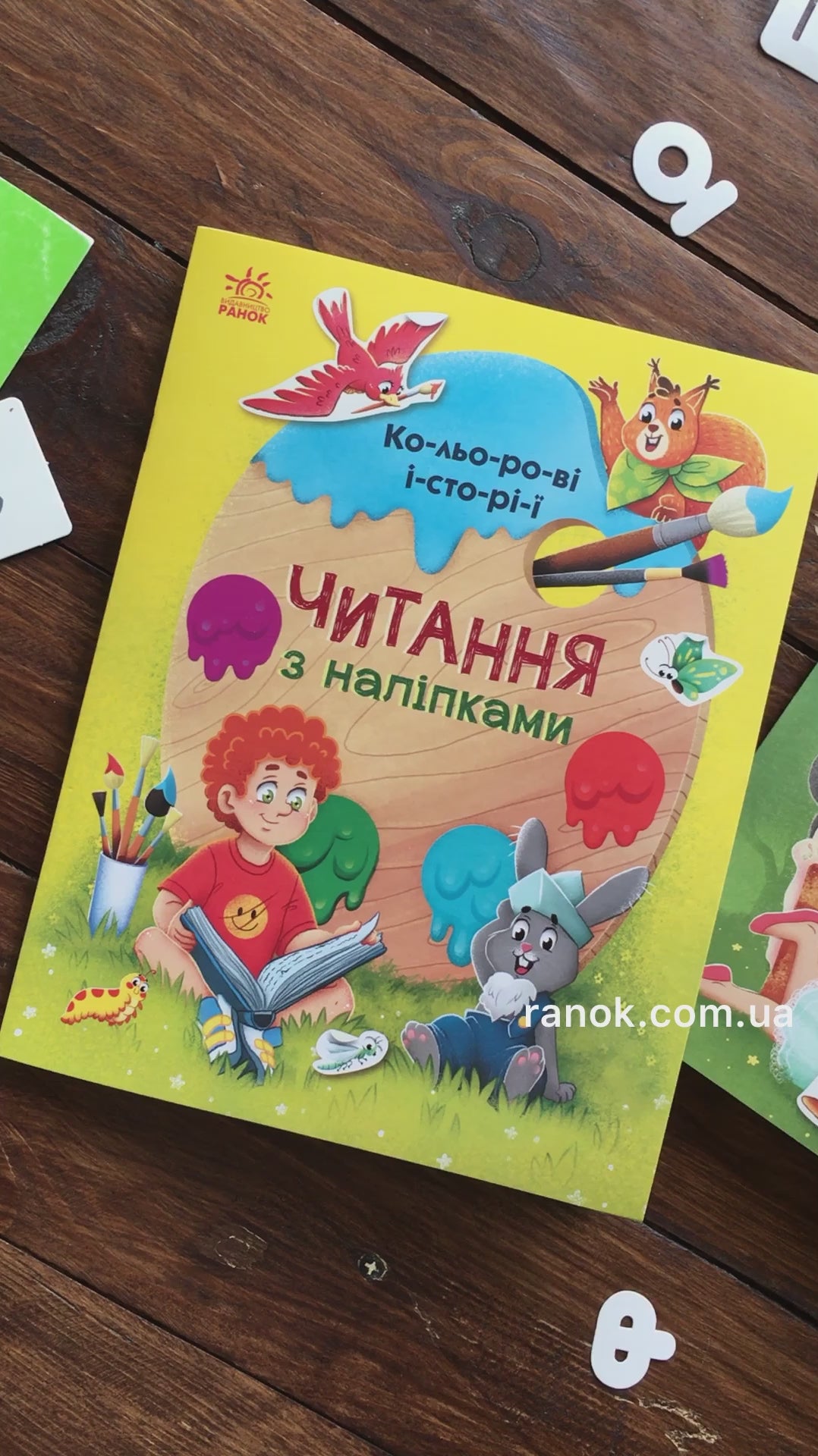 «Читання з наліпками» — не просто чергова «розвивалка» із вправами для тренування читання. Книги серії «Читання з наліпками» стимулюють не механічне, а усвідомлене читання. В кожній книзі є 2 сторінки з великими та яскравими наліпками. Дитині потрібно не просто  прочитати історію, а ще приклеїти наліпки в потрібні місця керуючись запитаннями та завданнями до них. А щоб зробити це правильно, важливо зрозуміти зміст прочитаного.