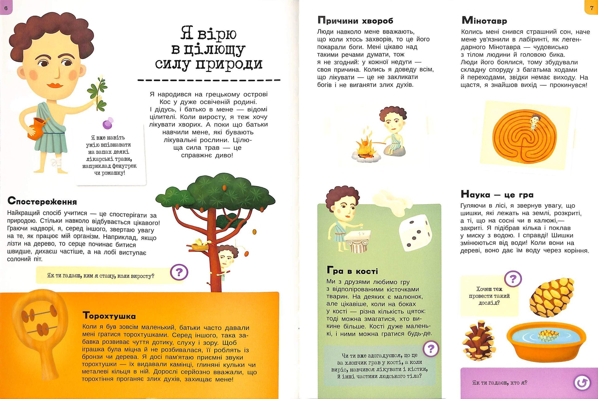 На сторінках книги «Дитинство славетних людей» ховаються 25 всесвітньовідомих людей: можновладці, винахідники та науковці, музиканти, дослідники та багато інших. Вони розповідають юному читачу про своє дитинство, але своїх імен одразу не називають - тримають інтригу до останнього.