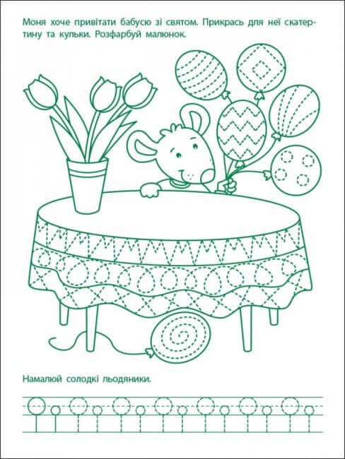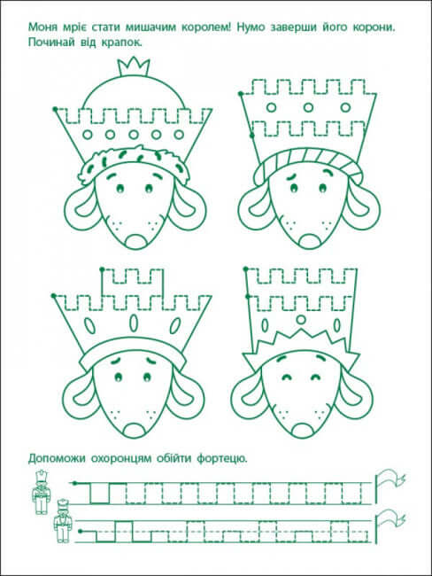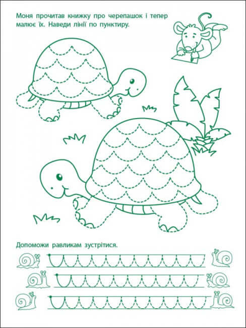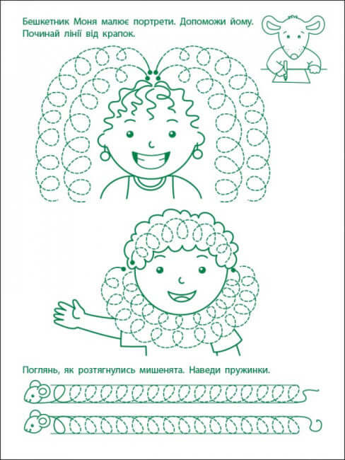 Зошити, які крок за кроком допоможуть опанувати навички письма й підготуватися до школи. А допоможе у цьому кумедне мишеня Моня. Одна сторінка – одне заняття. Ілюстрації в зошиті навмисно не кольорові. Тож можна розфарбувати їх після заняття та додатково потренувати м’язи рук малюка.