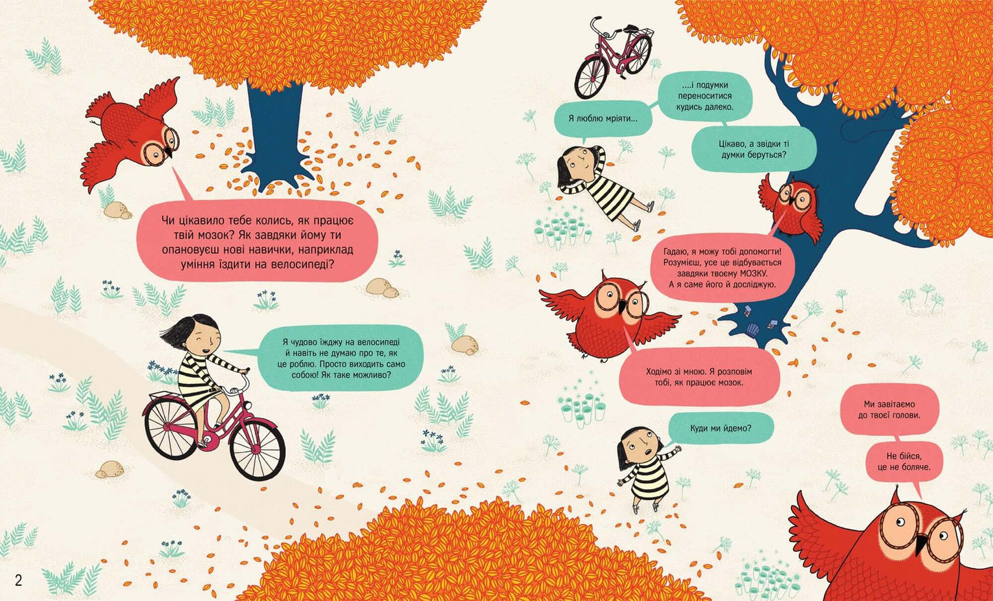 Це інтерактивна ілюстрована книга-мандрівка закапелками людського мозку. Для допитливих читачів молодшого шкільного віку. Чи знаєте ви звідки беруться думки? Чи цікаво вам дізнатися, як ми вчимося щось робити, наприклад їздити на велосипеді, чи вивчати вірші напам’ять? Все це відбувається завдяки нашому мозку, який виконує стільки завдань, наче всередині є місто, повне людей та механізмів. Докторка Бетіна Іп проведе кожного читача до його власного складу пам’яті, арт-галереї емоцій, розкаже, як ми бачимо картини очима і у своїй уяві, чи як вибираємо морозиво і не тільки про це. Тут можна дізнатися, що відбувається у мозку під час сну, що всередині ока, як виникає тривога, що потрібно робити, щоб краще запам’ятовувати те, що задали вивчити у школі, про людей, які вивчають мозок та відповіді ще на десятки запитань. Що важливо, інформація подається у формі захоплюючої розповіді з багатьма малюнками та схемами, значно цікавіше і не так складно, як у деяких підручниках.