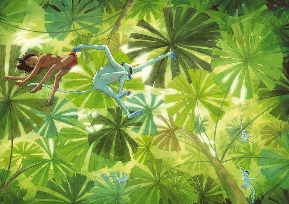 "Один з найвизначніших творів англійського письменника, лауреата Нобелівської премії з літератури Редьярда Кіплінґа, який був уперше опублікований у 1894 році. Збірка розповідей про «людське дитинча» Мауглі та його друзів полонила серця мільйонів читачів на всіх континентах, наразі перекладена десятками мов та налічує близько 20 екранізацій. Мауглі, Балу, Багіра та Шер-Хан оживають на сторінках книги Бібліотеки пригод завдяки неймовірним ілюстраціям Квентіна Ґребана. Історія перетворюється на дивовижний фільм, що з першої сторінки запрошує читача у світ, де панують свої правила та закони, у неповторний світ джунглів!