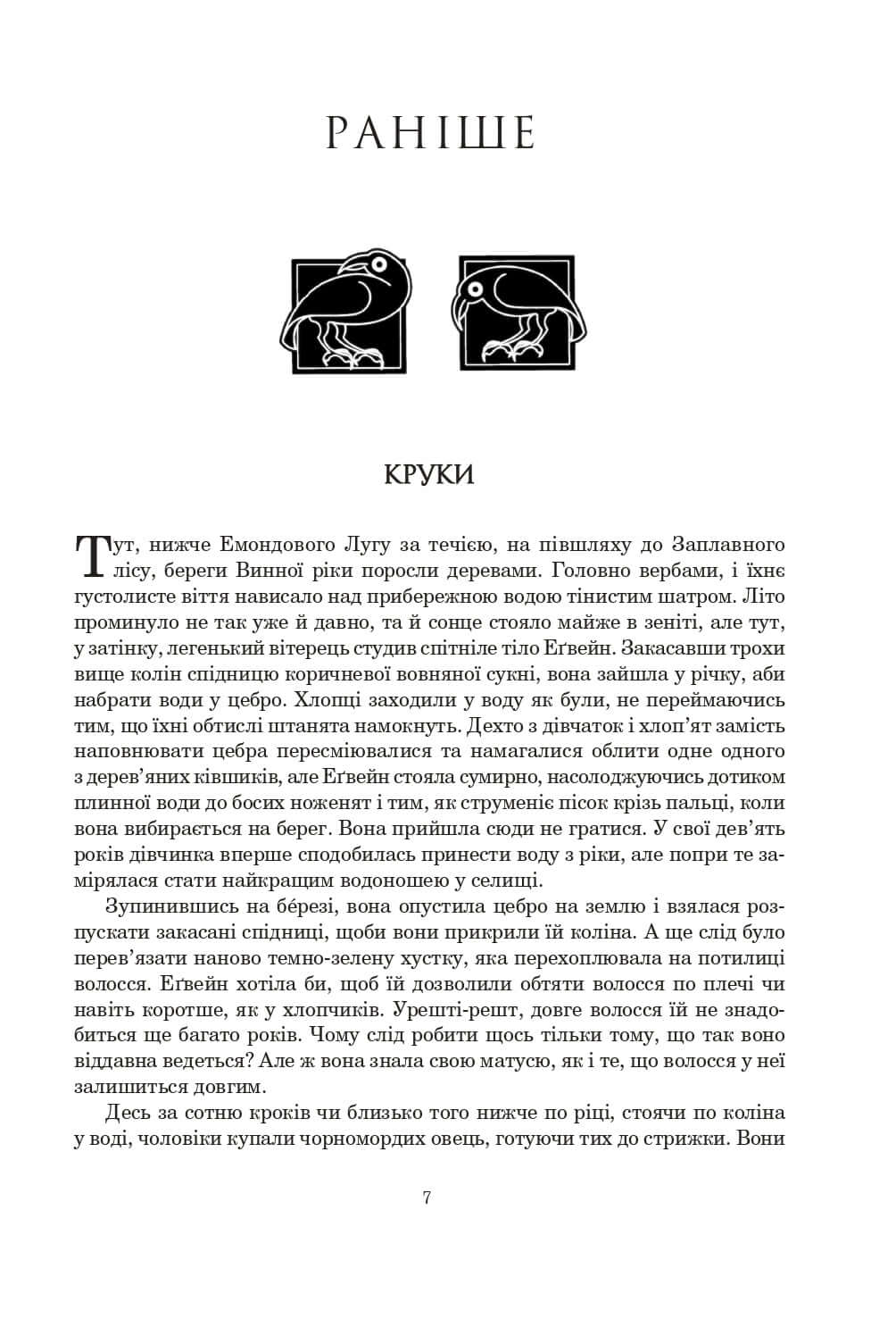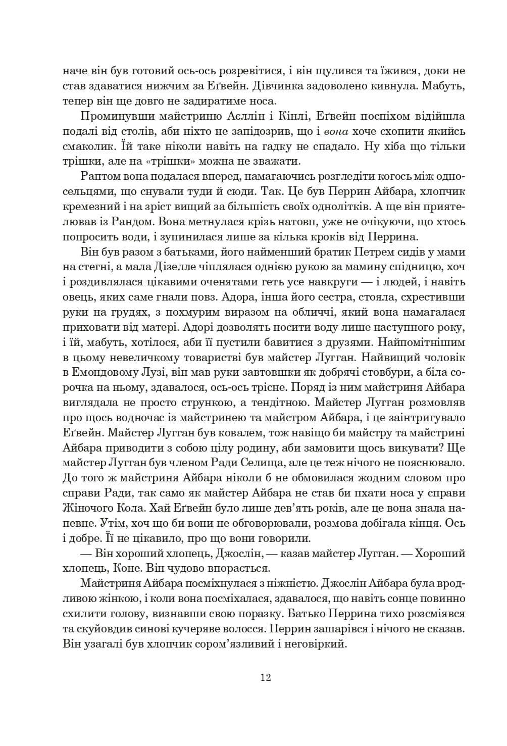 Що ж таке Колесо Часу? Уявіть собі величезну, завбільшки як космос прядку із семишпичним колесом, яке, повільно обертаючись, тче тканину всесвіту. Воно створює із життів і подій Великий Візерунок, що є минулим, теперішнім і майбутнім світу. І допоки обертається Колесо, нема кінця плетінню, і навіть смерть не є остаточною… Ось Колесо обернулося — і давні пророцтва про прихід Морока ожили. Чорна тінь Батька Брехні зависла над світом, а найперше над його крихітною частинкою — заґумінковим сільцем Емондів Луг. І ніхто з мешканців цього краю ще навіть не здогадується, що один із них — обраний. Принаймні так стверджує пророцтво. А пророцтва в цьому світі завжди справджуються.