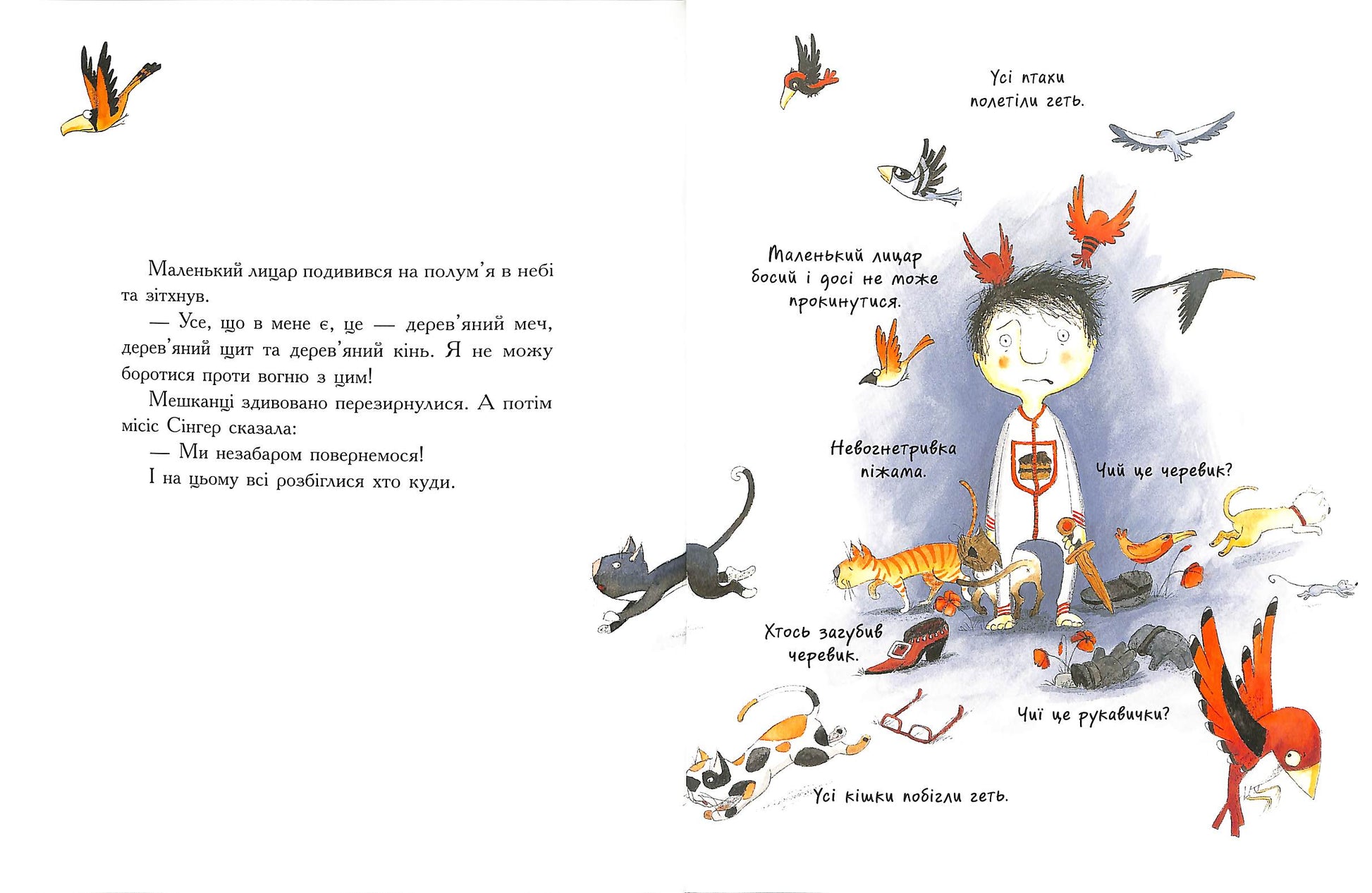 та зовсім не вогнетривких обладунків. Проте у маленького лицаря було головне — хоробре серце. А тому селяни швидко відшукали необхідні речі й відрядили героя на битву із чудовиськом.