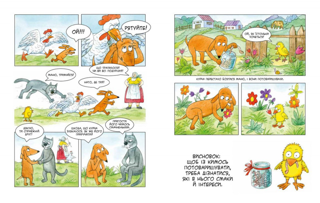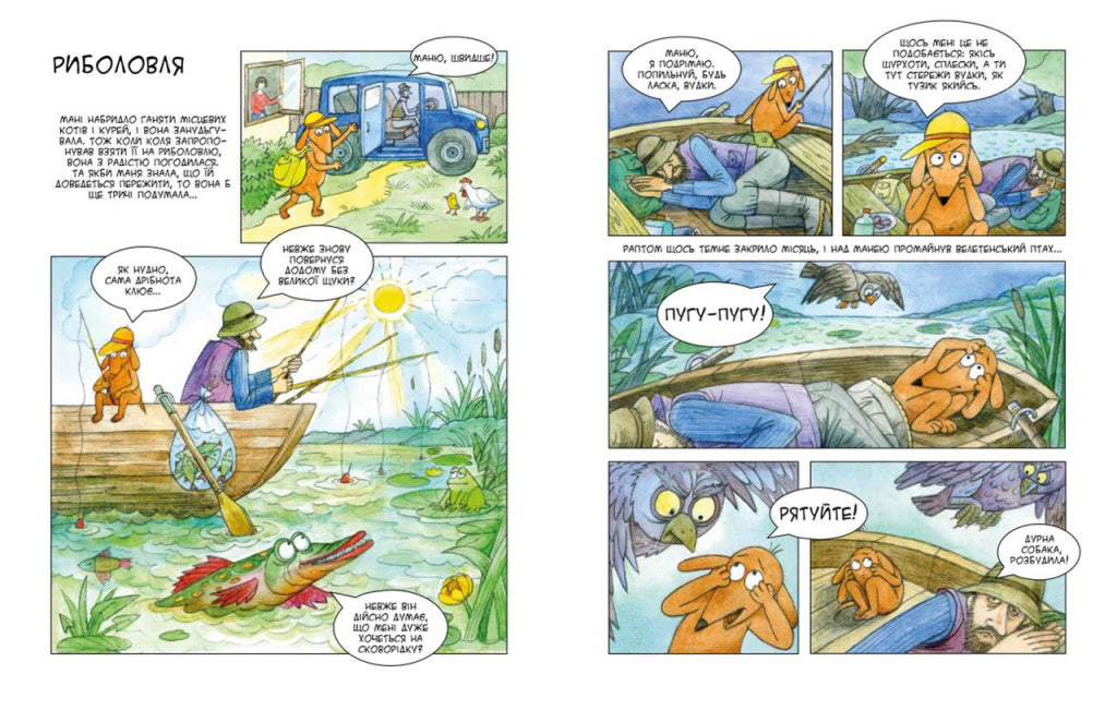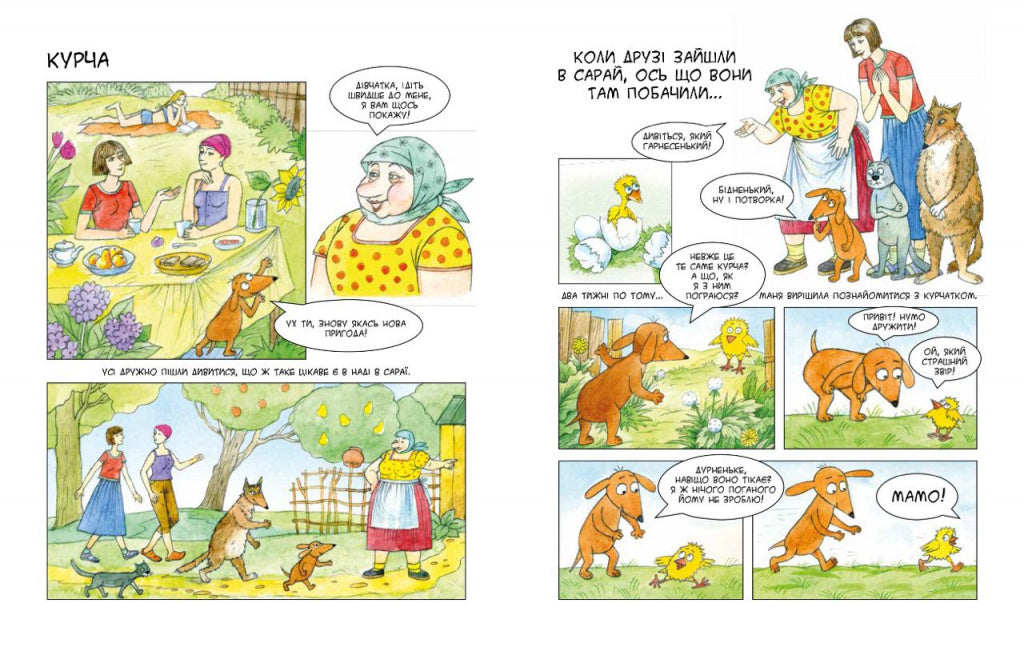 Українське село Опішня — найдивовижніше місце у світі, рай для такс! Я, такса Маня, побувала там якось і вирішила, що потрібно трохи розповісти дітям про це село, тим паче що Опішня — центр традиційної української кераміки. Там стільки всього цікавого! Кози, корови, гуси, кури, свині, коні! А ще всіляка дрібнота: їжачки, ящірки, бабки, равлики, метелики й жуки! Я розповім вам про ліс, ягоди й гриби. Про те, як я звільняла свійських тварин, приручала курча, ловила Найбільшу Рибу, рятувалася від викрадачів, займалася йогою, опікувалася безпритульними собаками, прихистила маленьке кошеня, улаштувала в саду живий куточок, розслідувала зникнення вареників, подружилася з лисицею з найближчого лісу і про те, як разом з новими друзями боролася за екологію й святкувала День Незалежності.