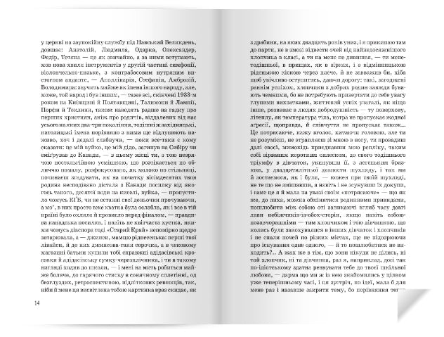 Це — сучасний епос сучасної України: родинна сага трьох поколінь, події якої охоплюють період від 1940-х років до весни 2004-го. Велика література і жорстока правда — про владу минулого над майбутнім, про кохання, зраду і смерть, про споконвічну війну людини за право бути собою.