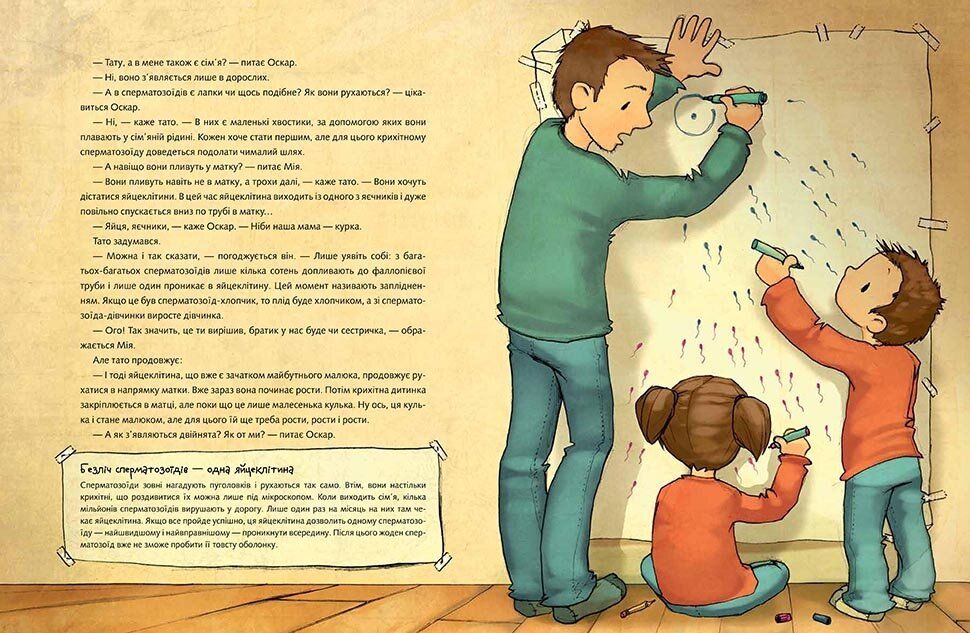 В Оскара та Мії скоро з’явиться братик чи сестричка. І це страшенно цікаво! Як малюк взагалі опиняється в маминому животику? Чи падає йому на голову їжа, коли мама обідає? Чим відрізняються хлопчики від дівчаток? На всі ці дитячі запитання книга має делікатні пояснення з цікавими розповідями та картинками. Наприкінці книги, дізнавшись багато нового, Мія та Оскар радіють народженню маленького братика.