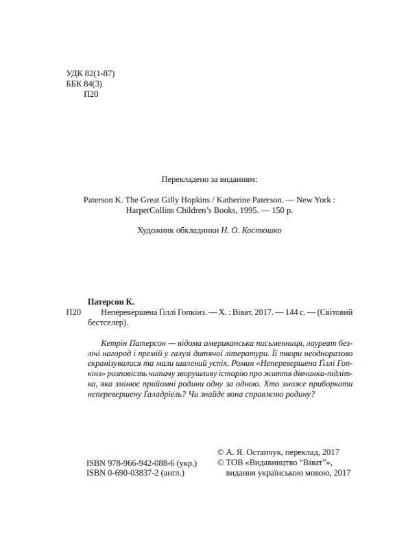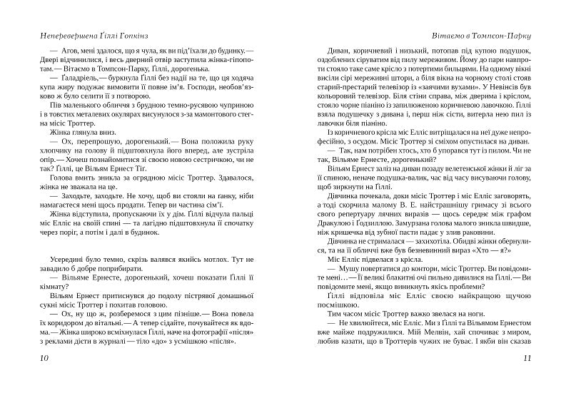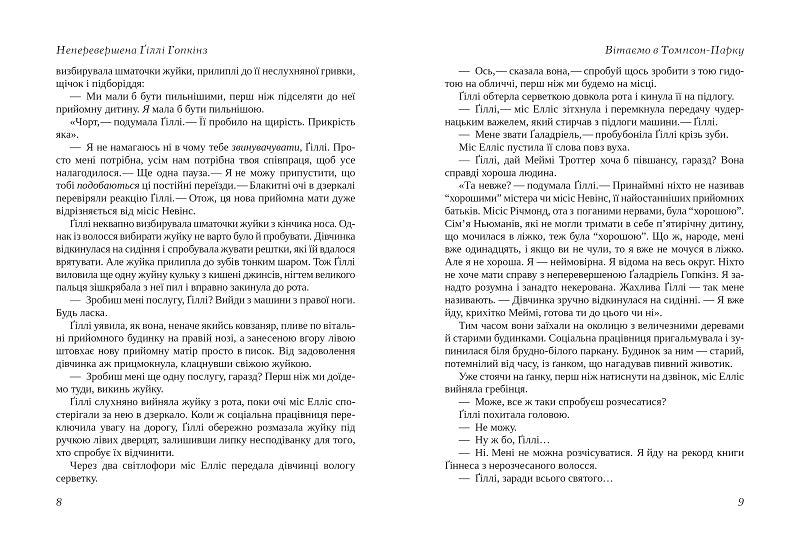 Безстрашна Ґіллі з хижою посмішкою будує плани проти нових родичів та й усіх, хто хоч спробує з нею подружитися. І поки вона намагається впоратися з непереборним прагненням зустрітися з матір’ю і страхом назавжди залишитися прийомною дитиною, мимохіть прив’язує до себе читача.
