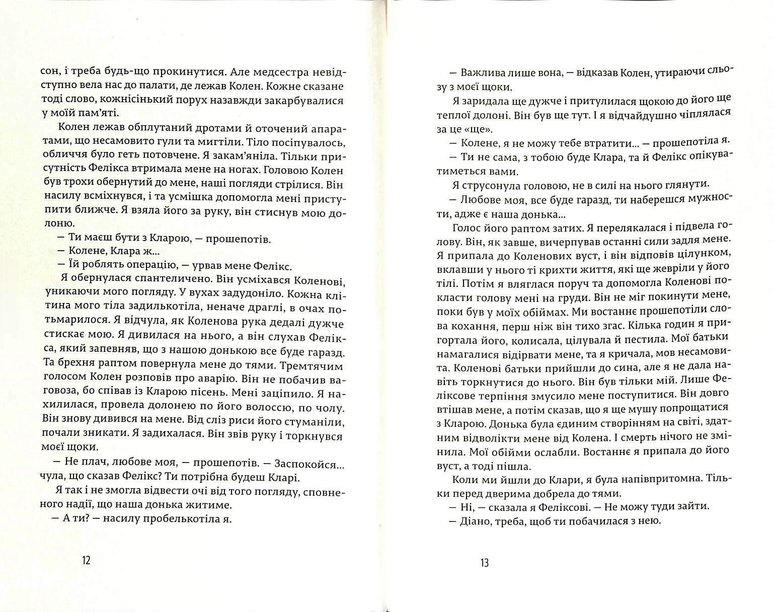 Бестселер французької письменниці Аньєс Мартен-Люган — сумна і красива історія жінки, яка після загибелі коханого чоловіка і доньки втрачає сенс існування. Головна героїня заново вчиться жити, кохати, відчувати. Книга про життя, поділене на «до» і «після», про самотність, надію, любов і віру в себе.