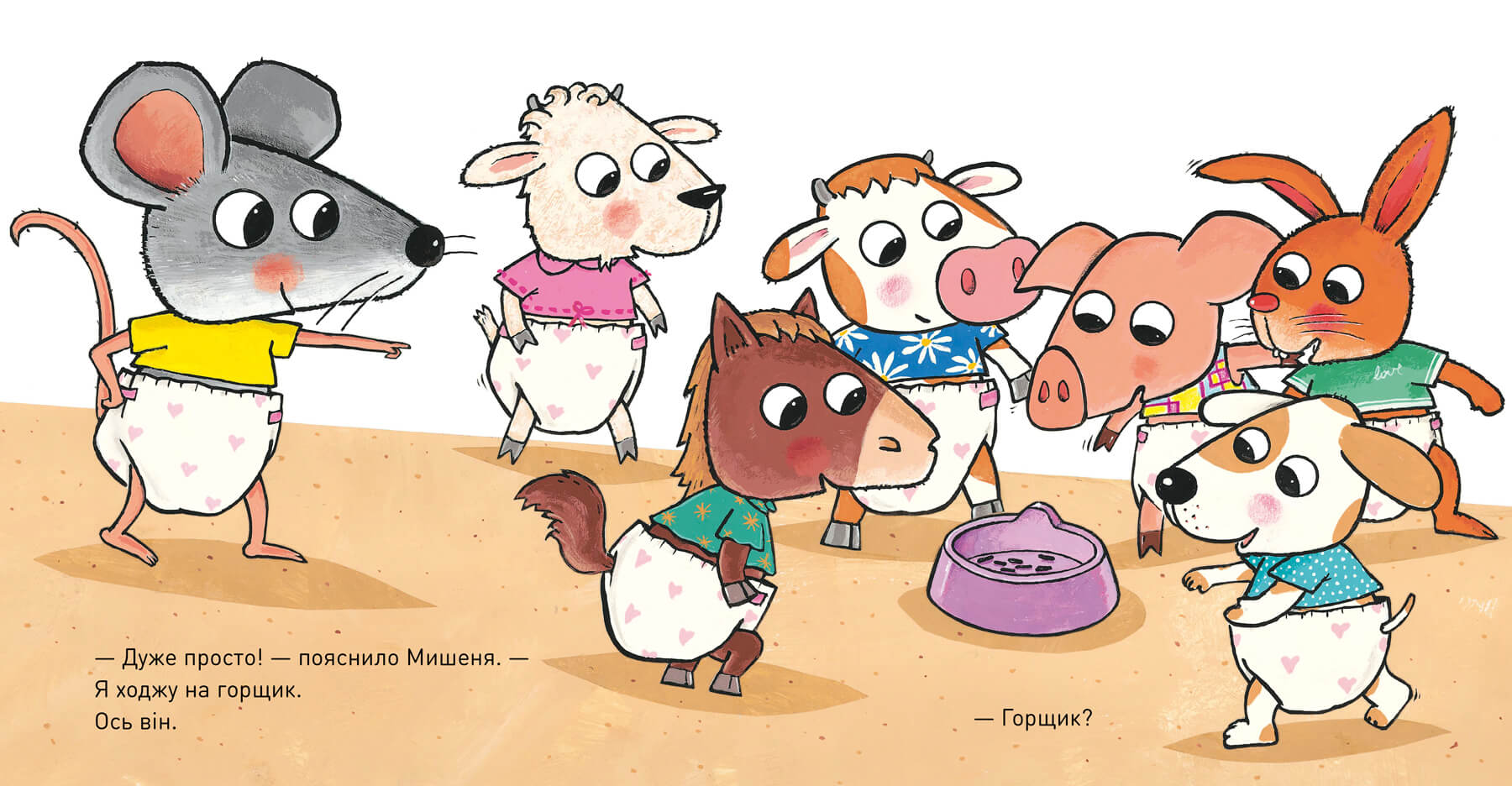 ·         Кумедна історія про допитливе Мишеня та його друзів допоможе малюкам перейти на новий рівень і навчить їх користуватися горщиком.