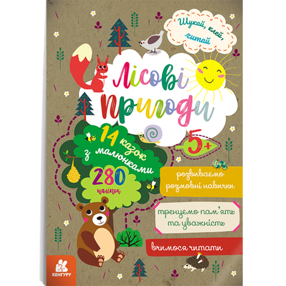 Книжка із коротенькими цікавими оповідками, у яких деякі слова пропущені, а замість них – чорно-білі малюнки. Діти мають дібрати та наклеїти відповідні кольорові наліпки й прочитати цікаві оповідки. При цьому потрібно побудувати правильно граматичне речення, поставити відповідне закінчення. Поєднання процесів читання та наклеювання, перетворення власноруч чорно-білої книжки у кольорову дуже захоплює малюків та заохочує їх до веселих занять і всебічного розвитку!
