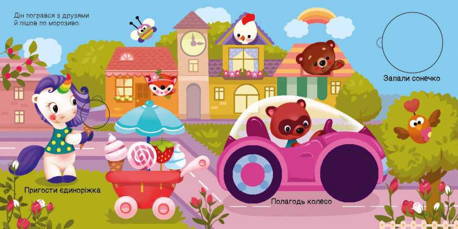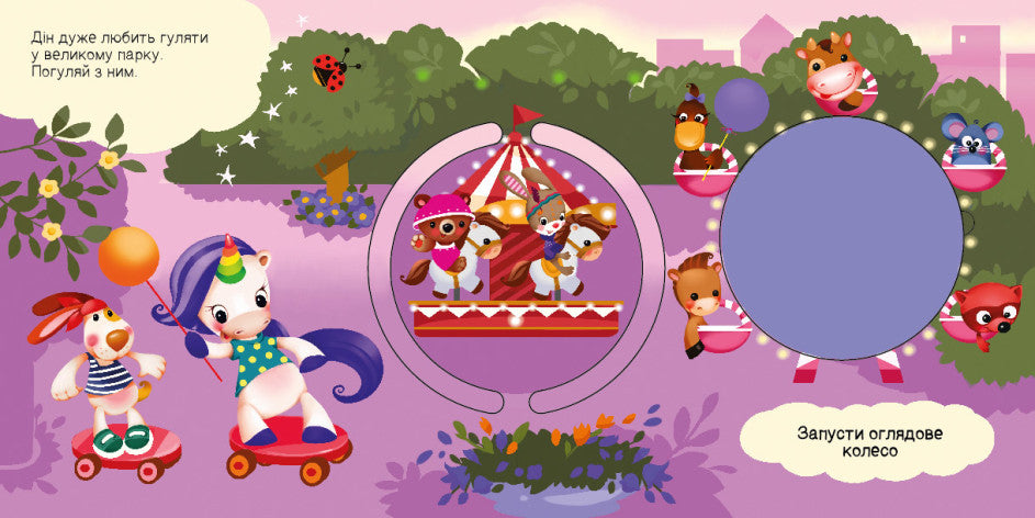 Серія книг "Шукаємо з єдноріжком" створена для дітей, які тільки знайомляться з геометричними фігурами та вчаться їх знаходити в навколишньому світі. Щоб допомогти єдноріжку Діну виконати всі завдання, малюкові знадобляться фігури різного розміру. Їх дитина знайде тільки відкривши книгу. А потім почнеться захоплююча гра, в якій потрібно буде: шукати, підбирати і правильно використовувати ці фігурки.