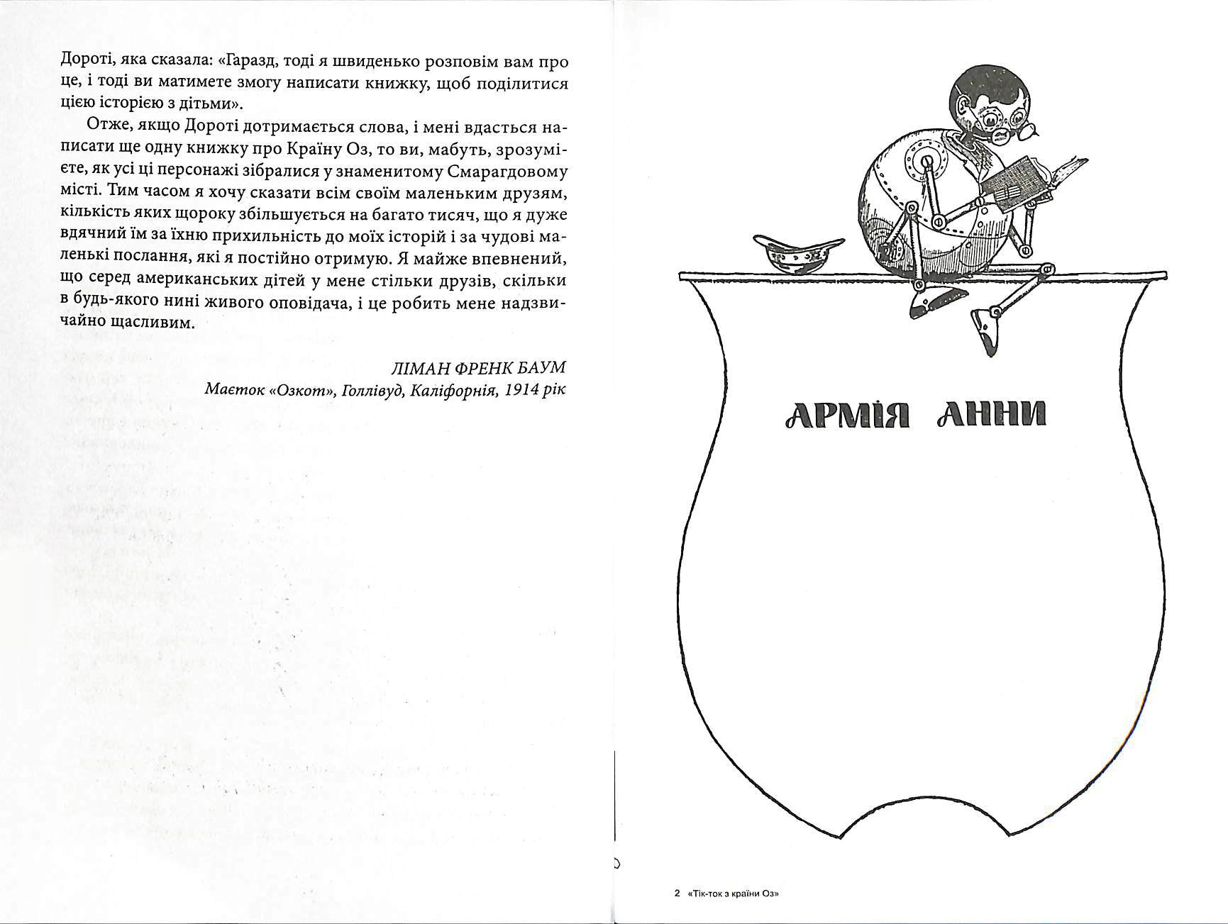 Про Механічну людину – Тік-Тока казкар Ліман Френк Баум згадує в багатьох своїх книжках. Однак у цій розповіді автор вирішив приділити  улюбленому персонажу значно більше уваги, зробивши його одним з головних героїв. Бо щиро захоплюється такими рисами Тік-Тока, як безстрашність і відданість друзям.  От і цього разу Механічна людина без зволікань вирушила назустріч небезпеці, аби допомогти Косматому чоловічку знайти зниклого безвісти брата. І хоч першу битву, зустрівшись з ворогом сам на сам, він програв, це не похитнуло віру сміливця в майбутню перемогу.