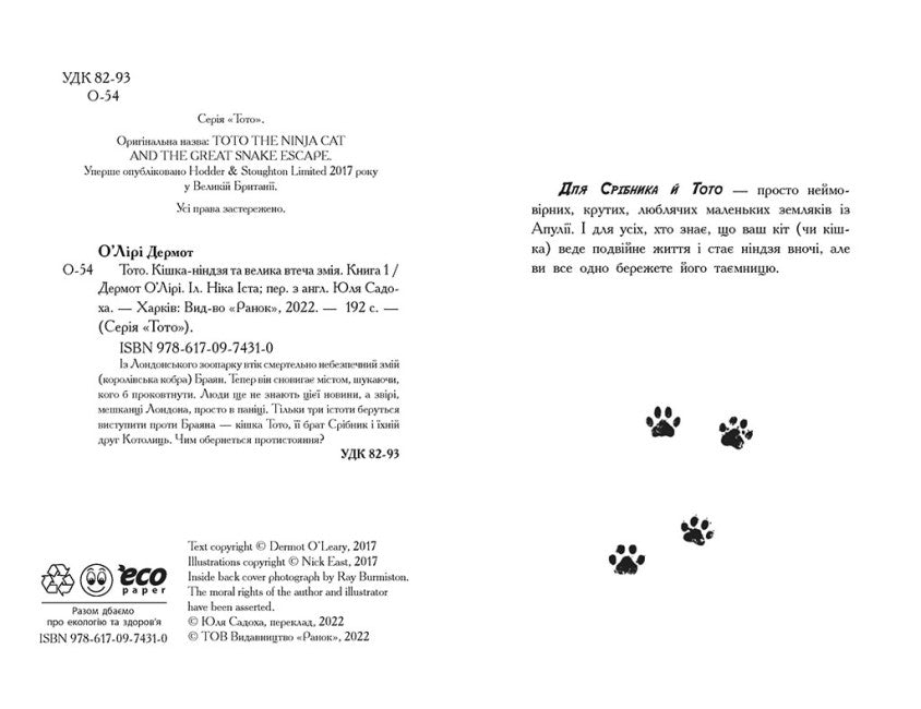Тото. Кішка-ніндзя та велика втеча змія. Книга 1