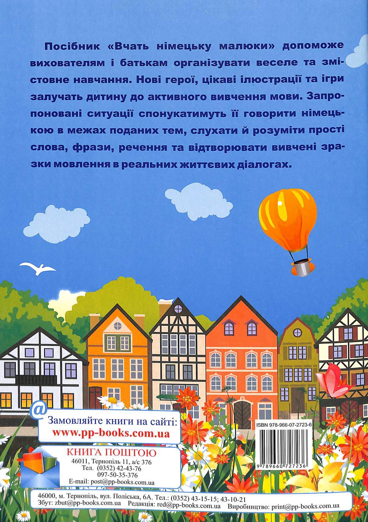 Посібник містить німецькі слова та розмовні структури. Матеріал дібрано відповідно до тем, які подають дітям основні відомості про навколишній світ. Використання ілюстрацій та ігрових елементів сприяє підвищенню мотивації і спонукає до легкого й невимушеного засвоєння матеріалу дошкільнятами.