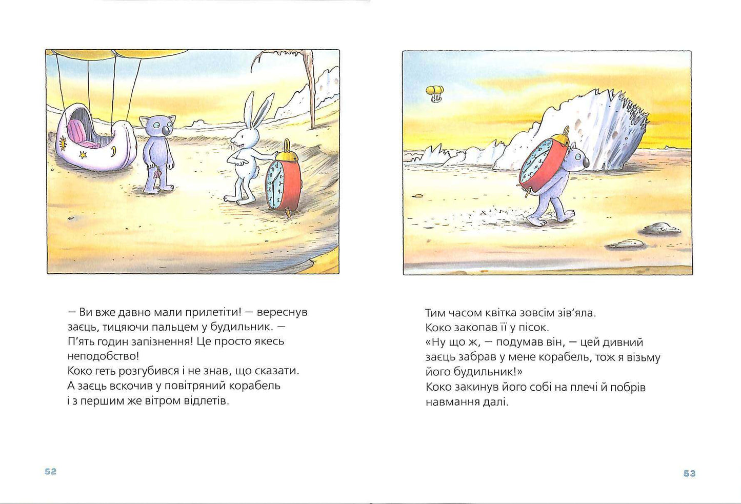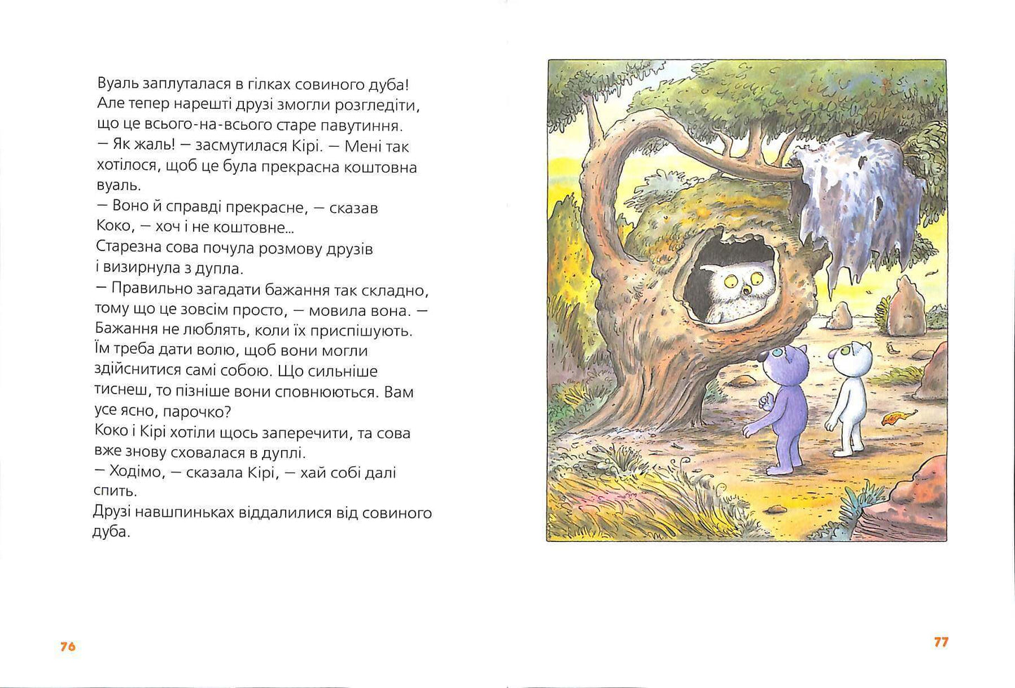 Це історія про фантастичні й кумедні пригоди ведмежати Коко та його подружки Кірі, які живуть у Країні Мрій. Там вони знайомляться з Білою птахою, чорними мишами, драконом Рікко та іншими дивовижними звірами. Маленькі герої Ервіна Мозера, автора бестселерів «Мануель і Діді», потрапляють у курйозні ситуації, знаходять чарівну рожеву парасольку та літай-килим, багато мріють і вчаться правильно загадувати бажання... Дорогою пригод вони знаходять щось значно цінніше за казкові речі — підтримку і любов.
