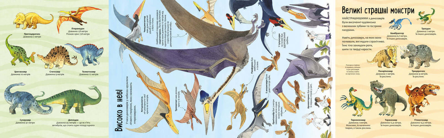 • «Велика книга динозаврів» розповість юним дослідникам про розміри, харчування, а головне — про дивовижні особливості кожного зі згаданих тут динозаврів.