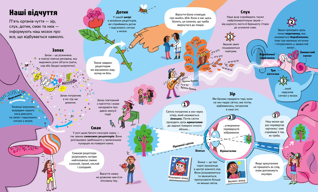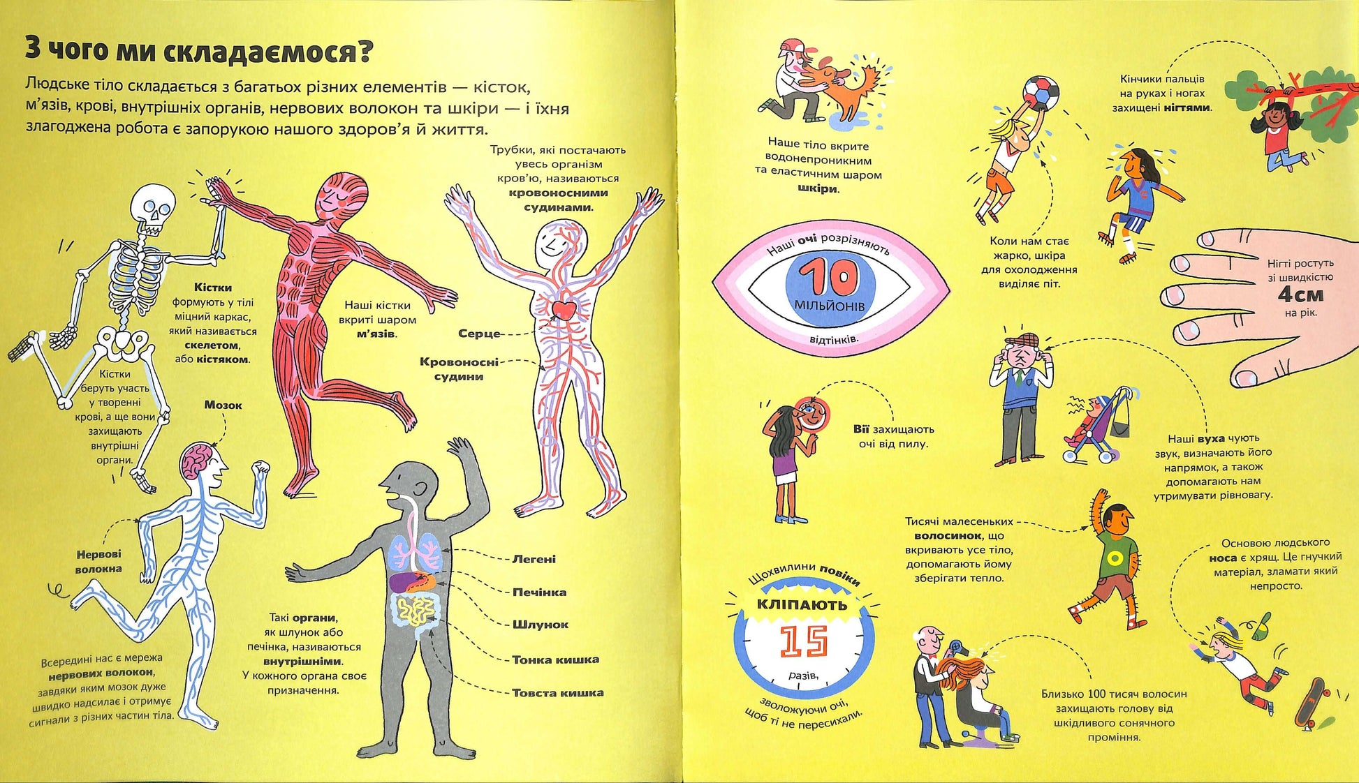 Яка половина серця сильніша: ліва чи права? Як працює наш зір? Скільки днів організм перетравлюватиме важку їжу? Завдяки цій книжці можна дізнатися багато корисного про дивовижно складний та злагоджений механізм — тіло людини!