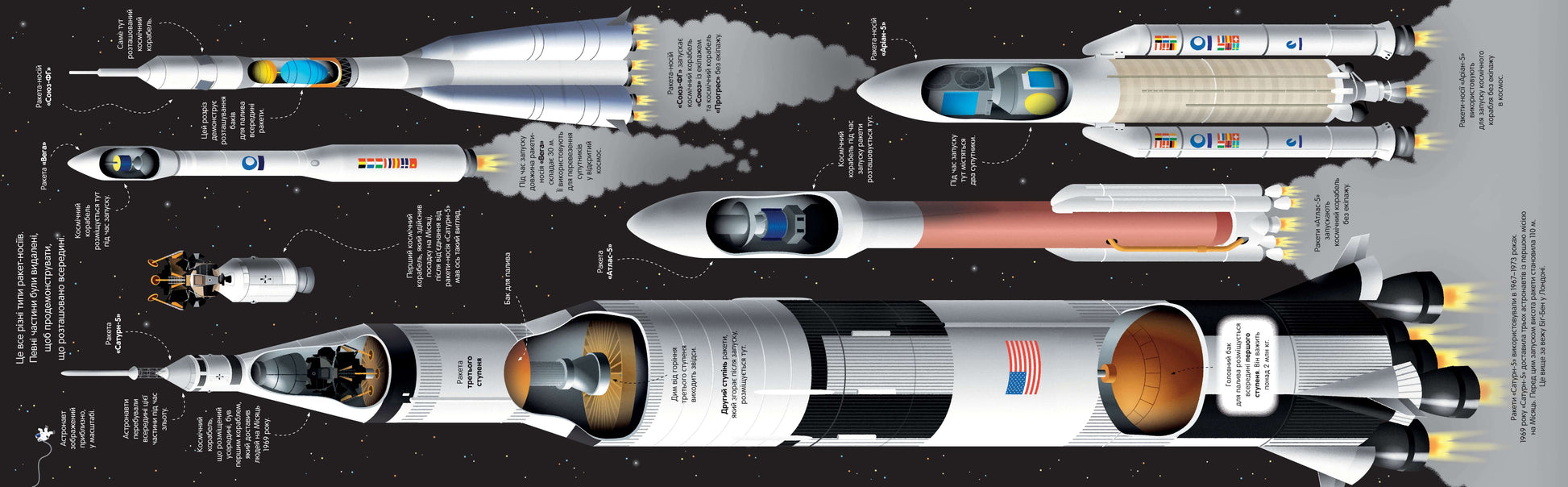 Від перших ракет та місій на Місяць до космічних станцій і не тільки. Дізнайся, як воно — залишити нашу планету та навіть пожити у космосі!