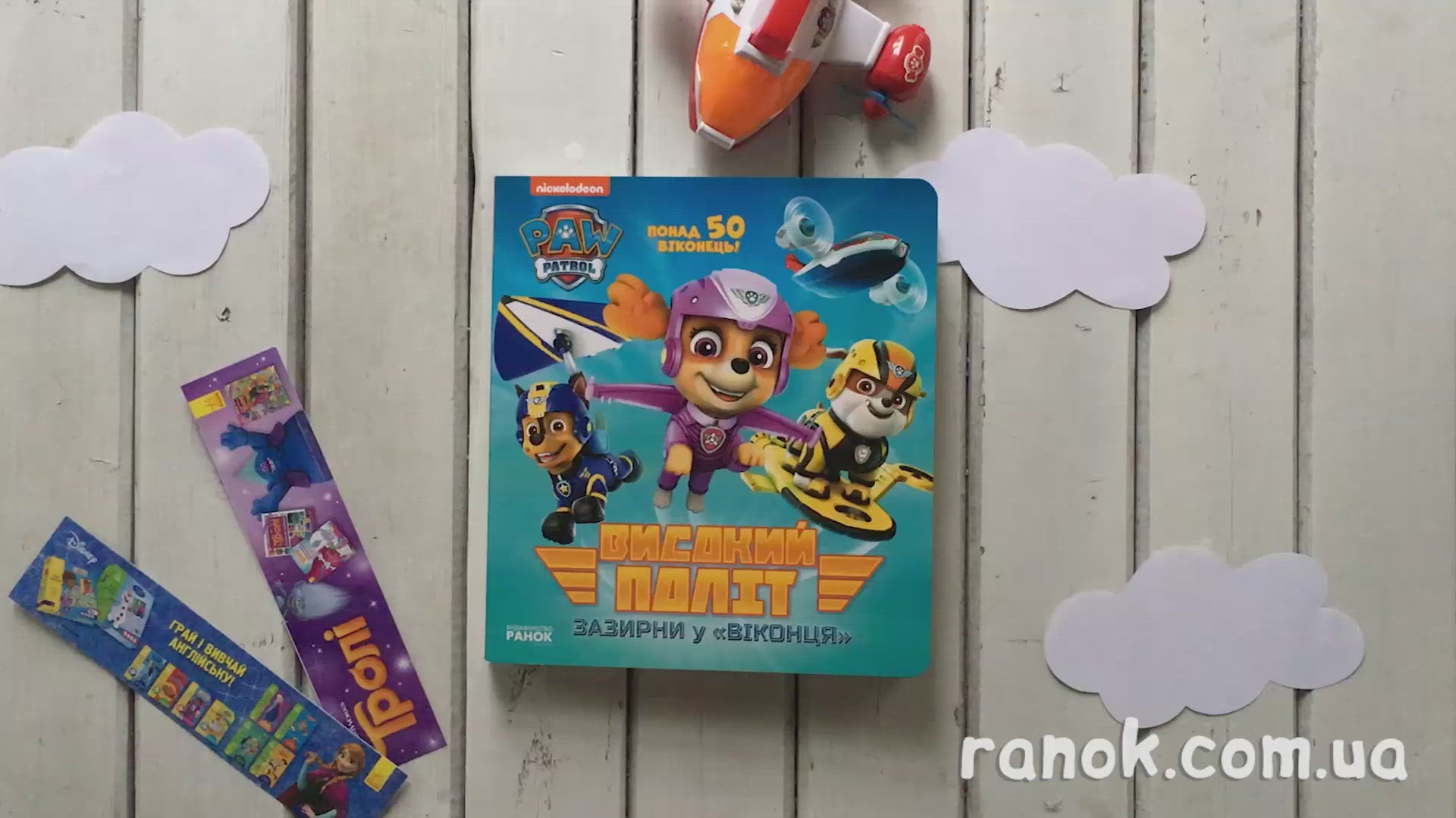 Це «Повітряний Патруль» — літачок твоїх улюблених персонажів. Візьми участь у нових пригодах героїв Щенячого Патруля! У цій захопливій книжці 50 віконець, їх можна відкрити і приєднатися до команди, щоб допомогти щенятам виконати завдання.