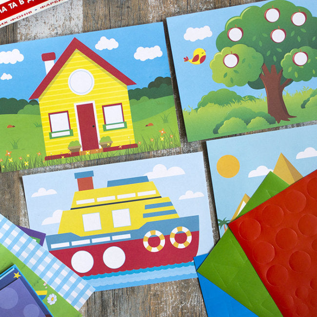Набір, який допоможе дитині зробити перший крок у розвитку творчих здібностей. Ваш малюк познайомиться з кольорами, формами (круг, трикутник, квадрат і прямокутник) та з поняттям «величина» (великий та маленький). Яскраві картинки заохочуватимуть дитину до самостійної роботи і стануть основою її перших шедеврів. Бажаємо успіхів!