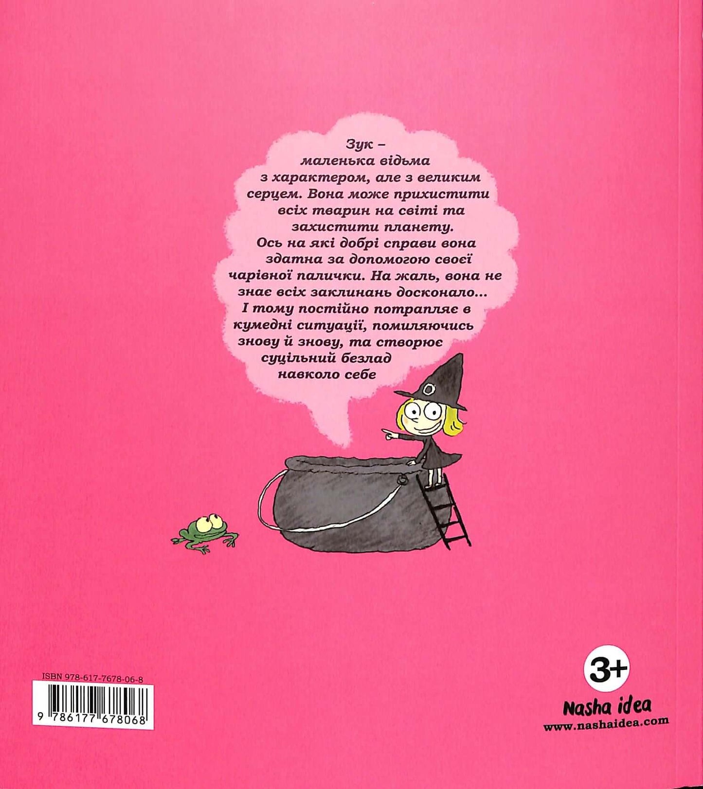 Зук – маленька відьма з характером, але з великим серцем. Вона може прихистити всіх тварин на світі та захистити планету. Ось на які добрі справи вона здатна за допомогою своєї чарівної палички. На жаль, вона не знає всіх заклинань досконало… І тому постійно потрапляє в кумедні ситуації, помиляючись знову й знову, та створює суцільний безлад навколо себе.